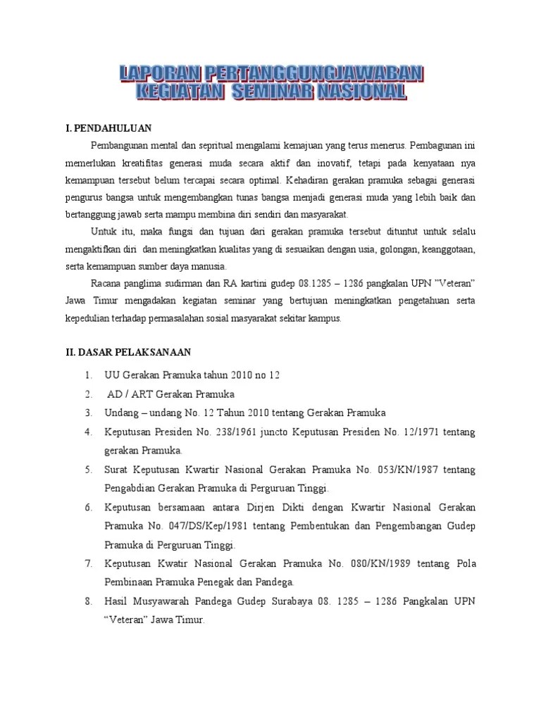 Contoh Laporan Kegiatan Seminar : Pengunggahan Laporan Akhir Laporan Penggunaan Anggaran Dan Berkas Seminar Hasil Litabmas Lldikti Wilayah Xii / Pendahuluan alhamdulillah kami ucapkan rasa syukur kepada allah swt yang telah memberikan kami .