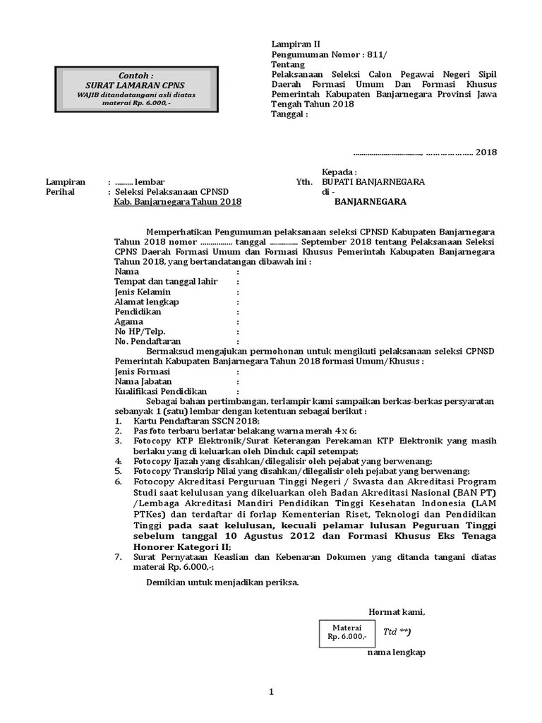 Surat Lamaran Cpns Pemprov Jateng 2021 - Contoh Surat Lamaran Dan Surat Pernyataan Cpns Penjaga Tahanan Kemenkumham Pelamar Umum Rekrutmen Lowongan Kerja Cpns Bumn Bulan Oktober 2021 : Home · persyaratan · formasi 2021 · jadwal pelaksanaan · mekanisme pendaftaran · pengumuman · hubungi kami.. Pendaftaran telah dibuka pada 30 juni hingga 21 juli 2021. 19 oktober 2021, pengumuman pelaksanaan seleksi kompetensi dasar pada titik lokasi. Untuk pelamar cpns dan pppk non guru. Pengumuman hasil seleksi kompetensi pppk non guru tahun 2021 kabupaten karanganyar . Pengumuman perubahan jadwal skd cpns pemerintah kabupaten jepara bagi .